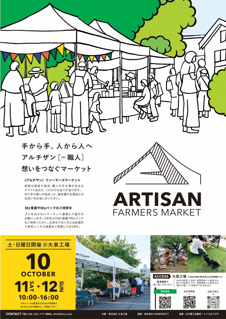 今回は、10月11日(土)、12(日)に開催する「(ARTISAN) FARMERS MARKET KAWAGUCHI 2025 AUTUMN」をご紹介します。