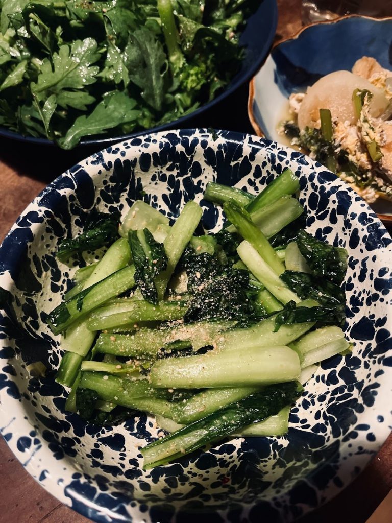「小松菜の韓国風ナムル」Korean-style Komatsuna Namul