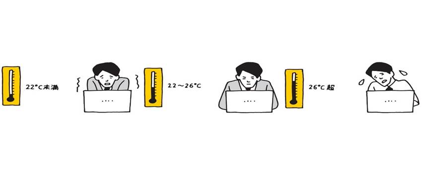 「人が集中力を発揮しやすいとされる室内温度は、18℃から22℃の間」と言われています。エアコンやヒーターを上手に使いながら、この温度帯を意識して調整することが重要です。