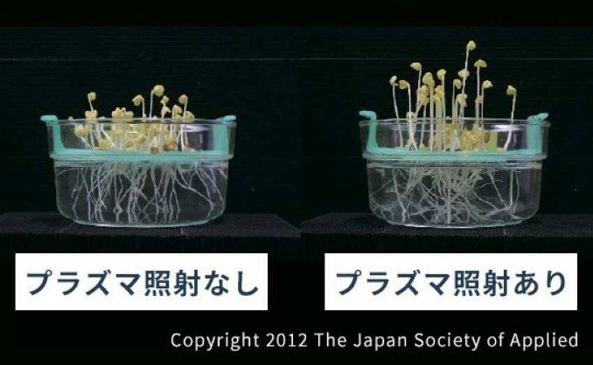 水にプラズマを照射すると、微量の活性成分を含んだ「プラズマ活性水」が生成されます。この水は植物が栄養を吸収しやすい状態になり、生育促進や病原菌の抑制に効果があるとされています。
