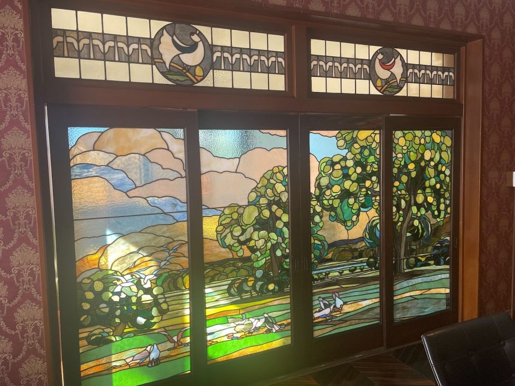扉一枚一枚にステンドグラスが施されている両引き戸タイプのものはかなり珍しいようです!